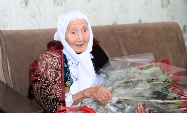 Облыс әкімі Асхат Шахаров Жәкібай Бисенғалиеваны мерейлі 110 жасымен құттықтап барды.