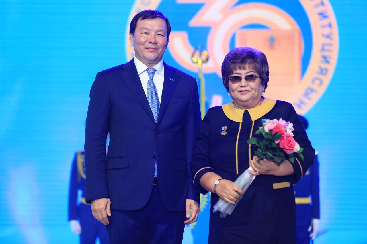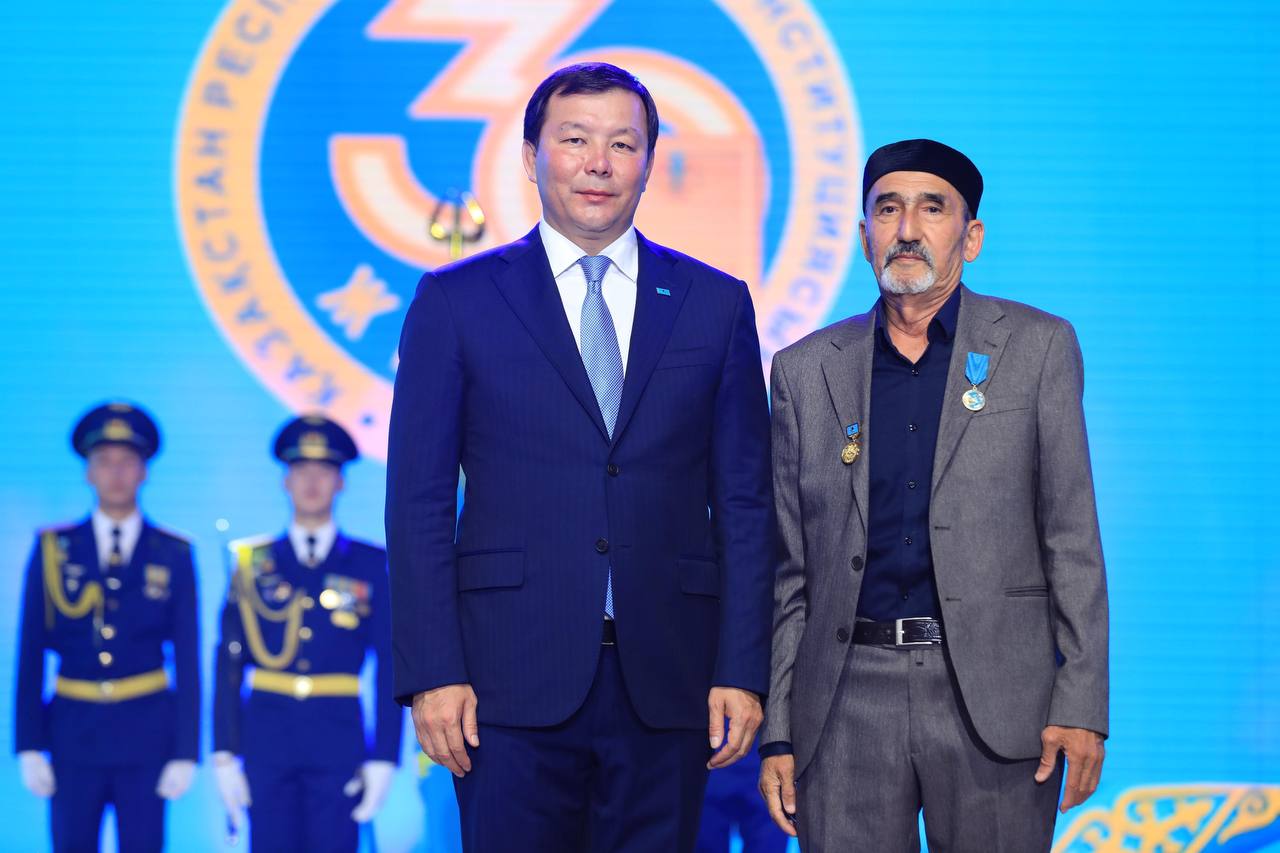 Қазақстанның бүгінгі бағындырған биіктерінің басты тұғыры — бірлік пен береке. Соңғы 30 жылда Қазақстан халқының тұтастығының кепілі — Ата Заңымыз болып отыр, — деген облыс әкімі әр салада қызмет еткен еңбек ардагерлеріне мемлекеттік наградалар тапсырды. Қазақстан Республикасы Президенті Қасым-Жомарт Тоқаевтың жарлығымен ел мемлекеттілігінің қалыптасуына, егемендігінің нығаюы мен әлеуметтік – экономикалық дамуына қосқан елеулі үлесі үшін «Қазақстан Республикасының Конституциясына 30 жыл» мерекелік медалімен еңбек ардагерлері Серік Ботағарин, Естай Жайлыбай, Айтқали Италиев, Сәния Қалдығұлова және Сұлупан Шынтасовалар марапатталды.