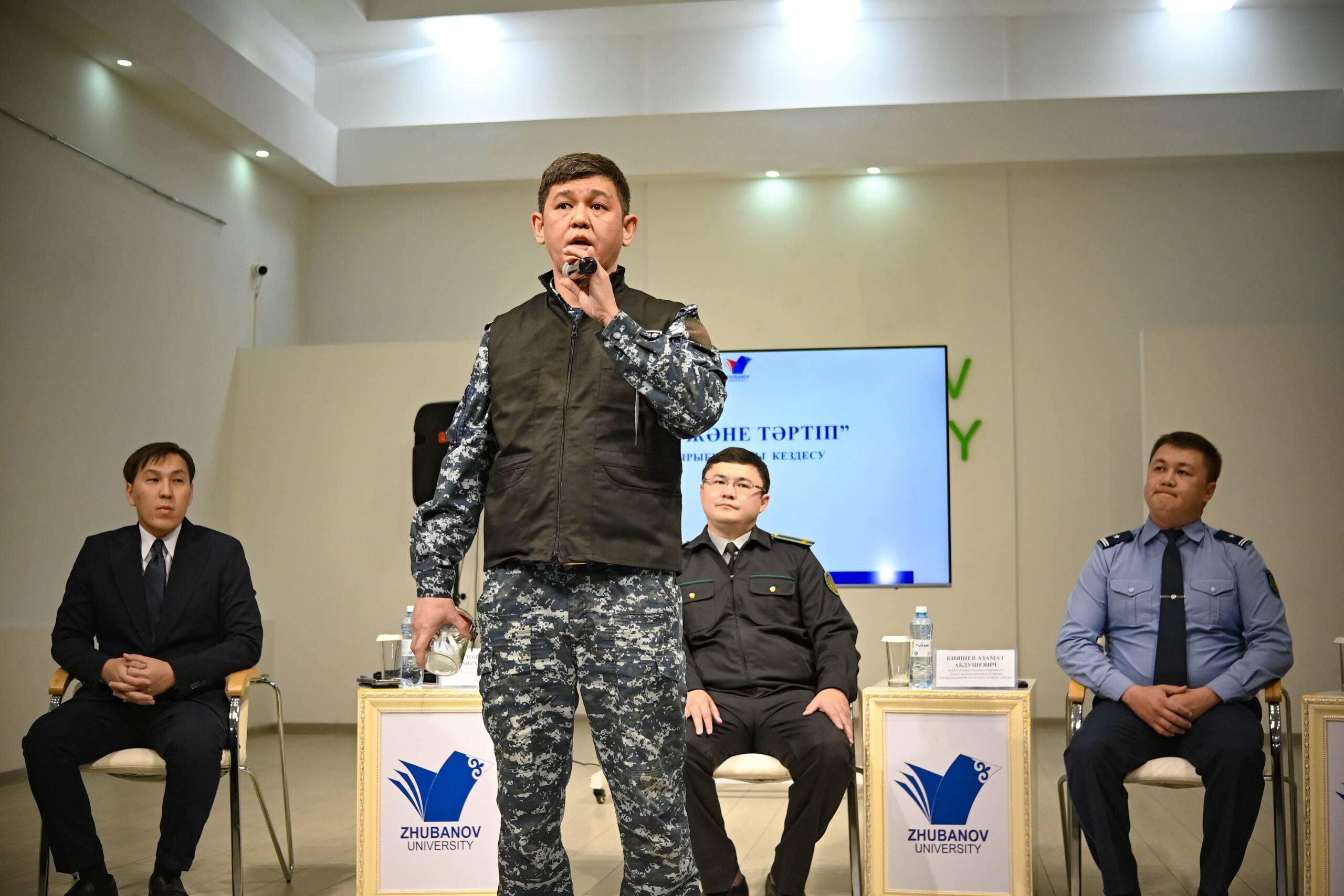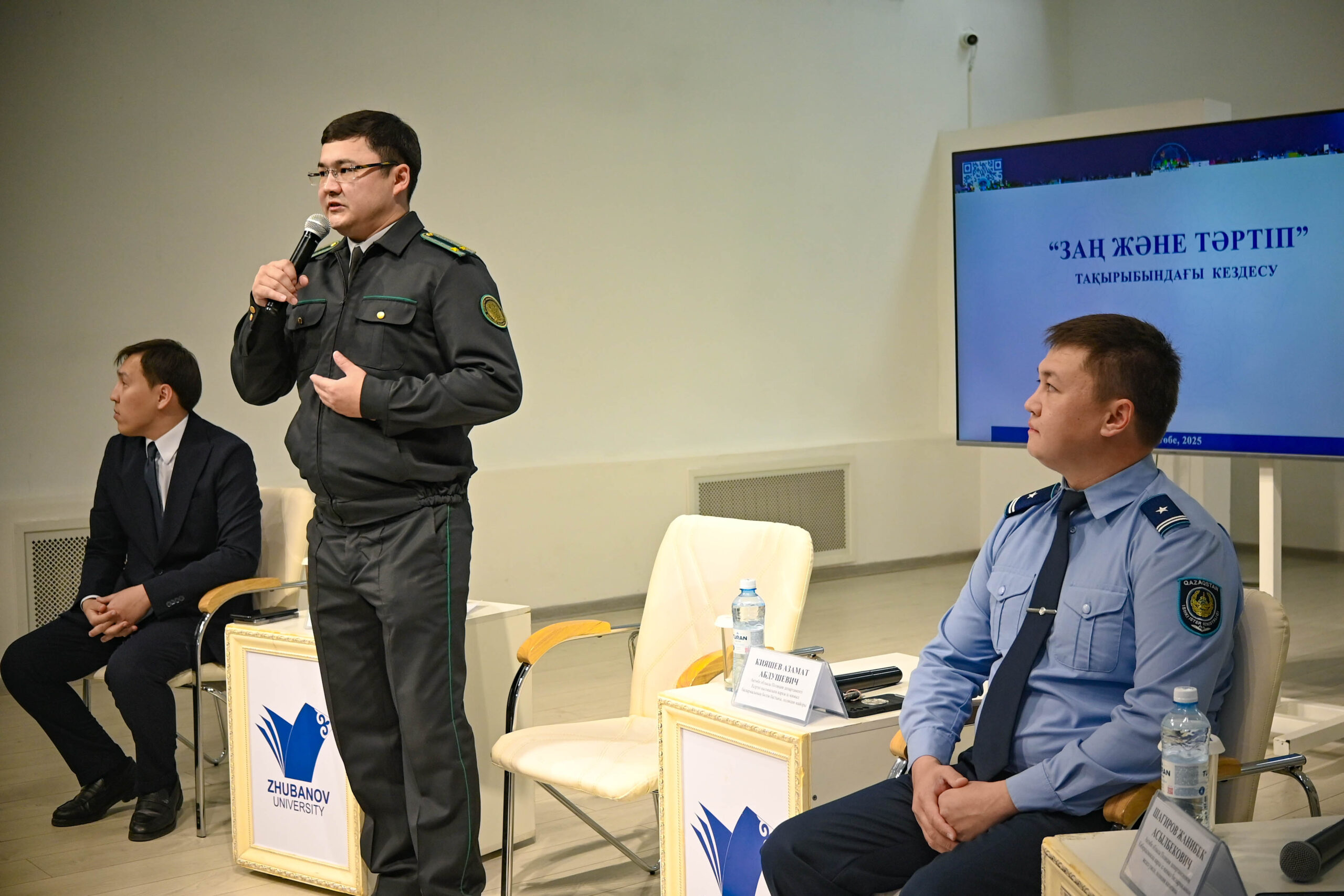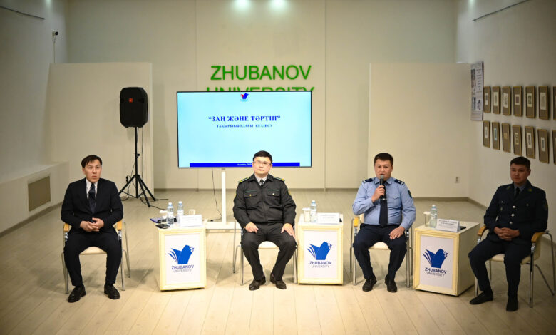 Қ.Жұбанов атындағы Ақтөбе өңірлік университетінде «Заң және тәртіп» тұжырымдамасы аясында шеберлік сағаты өтті. Іс-шараның мақсаты — құқықбұзушылықтың алдын алу, «Заң және тәртіп» қағидатына сай құндылықтарды насихаттау.