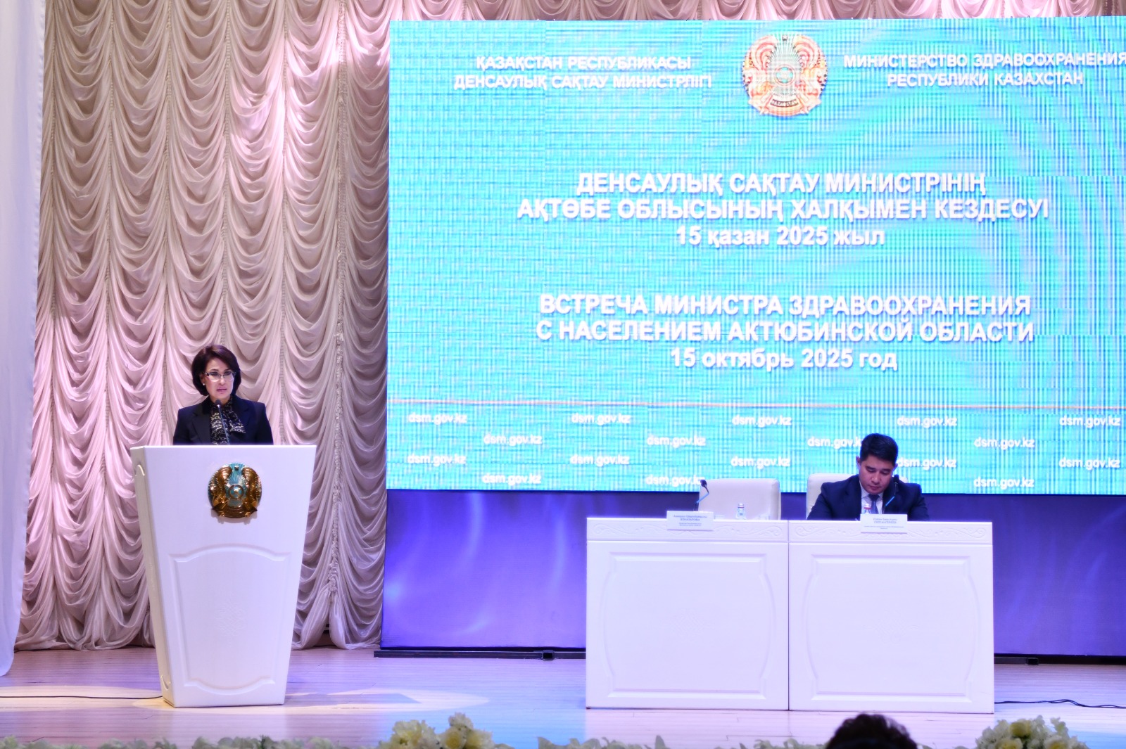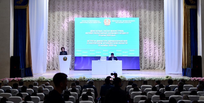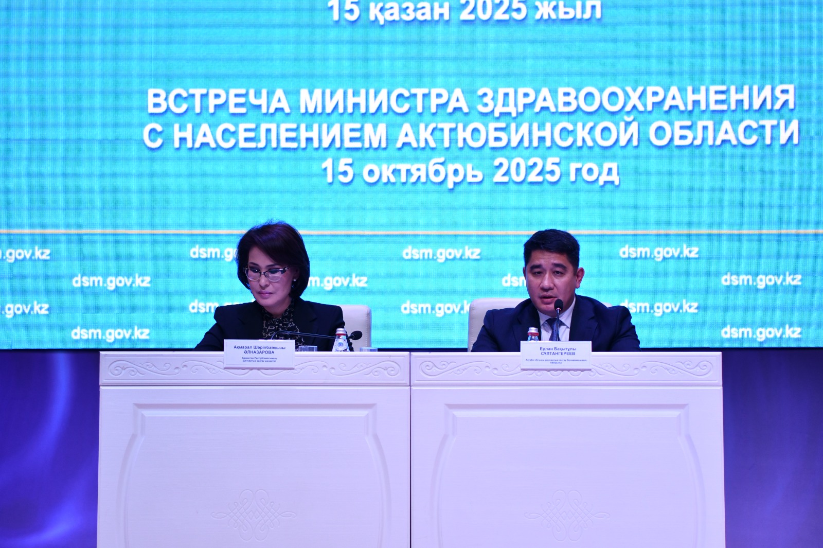Ақтөбе облысына жұмыс сапарымен келген Денсаулық сақтау министрі Ақмарал Әлназарова медицина мамандарымен және тұрғындармен кездесті. Жиын барысында министр денсаулық сақтау саласында атқарылып жатқан жұмыстарға тоқталып, өзекті мәселелерді ортаға салды.