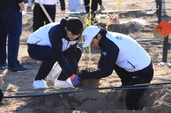 Аталған ағаш егу шарасына мұнай компаниясының қызметкерлері мен «Жасыл ел» еңбек жасағының сарбаздарыатсалысты.
