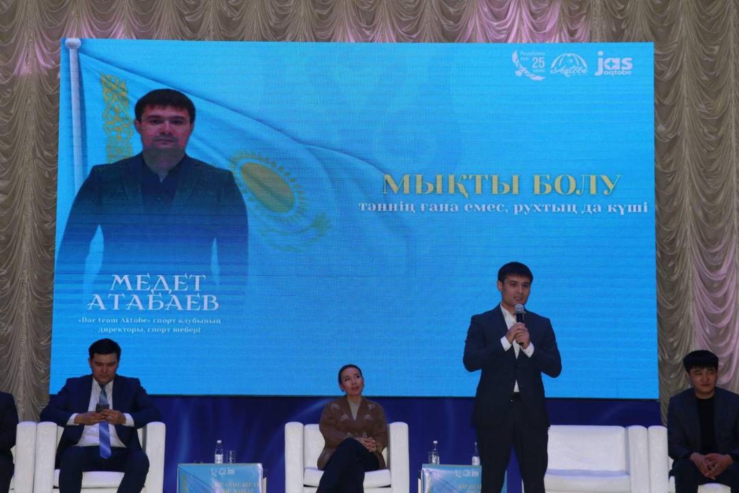 «Dar Team Aktobe» спорт клубының директоры, спорт шебері, кәсіби бапкер, 15 жылдық тәжірибесі бар, көптеген чемпиондарды тәрбиелеген жаттықтырушы – Медет Атабаев «Мықты болу тәннің ғана емес, рухтың да күші» тақырыбында жастар арасында салауатты өмір салтын насихаттау, спорттың тұлға қалыптастырудағы рөлі мен рухани күштің маңызы туралы әңгімеледі.