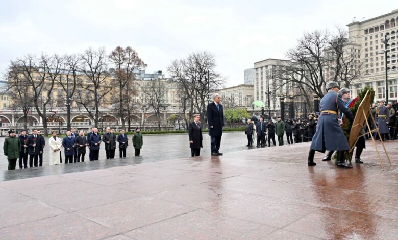 МӘСКЕУ. KAZINFORM — Қасым-Жомарт Тоқаевтың Ресей Федерациясына мемлекеттік сапарының екінші күні Александр бағындағы «Белгісіз жауынгер бейіті» мемориалына гүл шоғын қою рәсімінен басталды. Бұл туралы Ақорда мәлім етті.