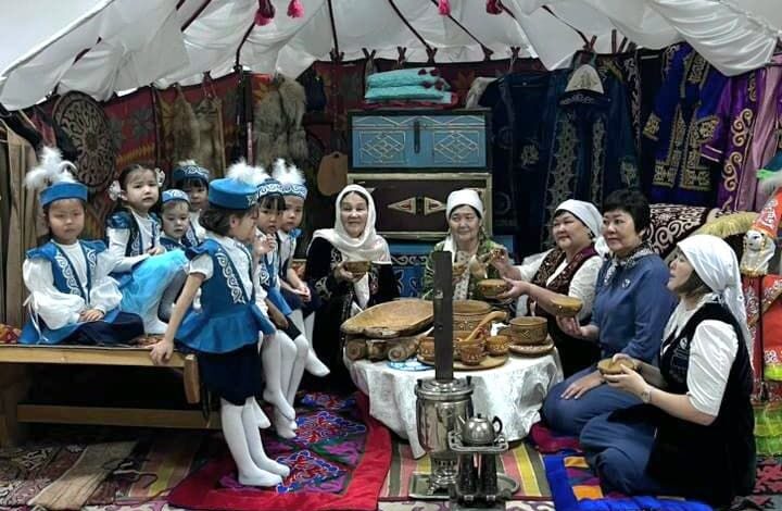 Іс-шара барысында музей қызметкерлері балабақша тәрбиеленушілеріне қазақ халқының тұрмыс-салтын, киім үлгілерін, ұлттық тағам түрлерін таныстырды.