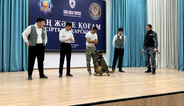 Азамат Қияшев оқушыларға телефонға келген күмәнді хабарламаларға, WhatsApp пен Telegram-дағы белгісіз ұсыныстарға абай болып, «жеңіл ақшаға» алданбау керектігін ескертті. Жиында теріс жолға түсіп кеткен жастар туралы бейнефильм көрсетіліп, кинологтар есірткі заттарды иісшіл иттердің көмегімен қалай ұстайтындарын тәжірибе жүзінде көрсетті.
