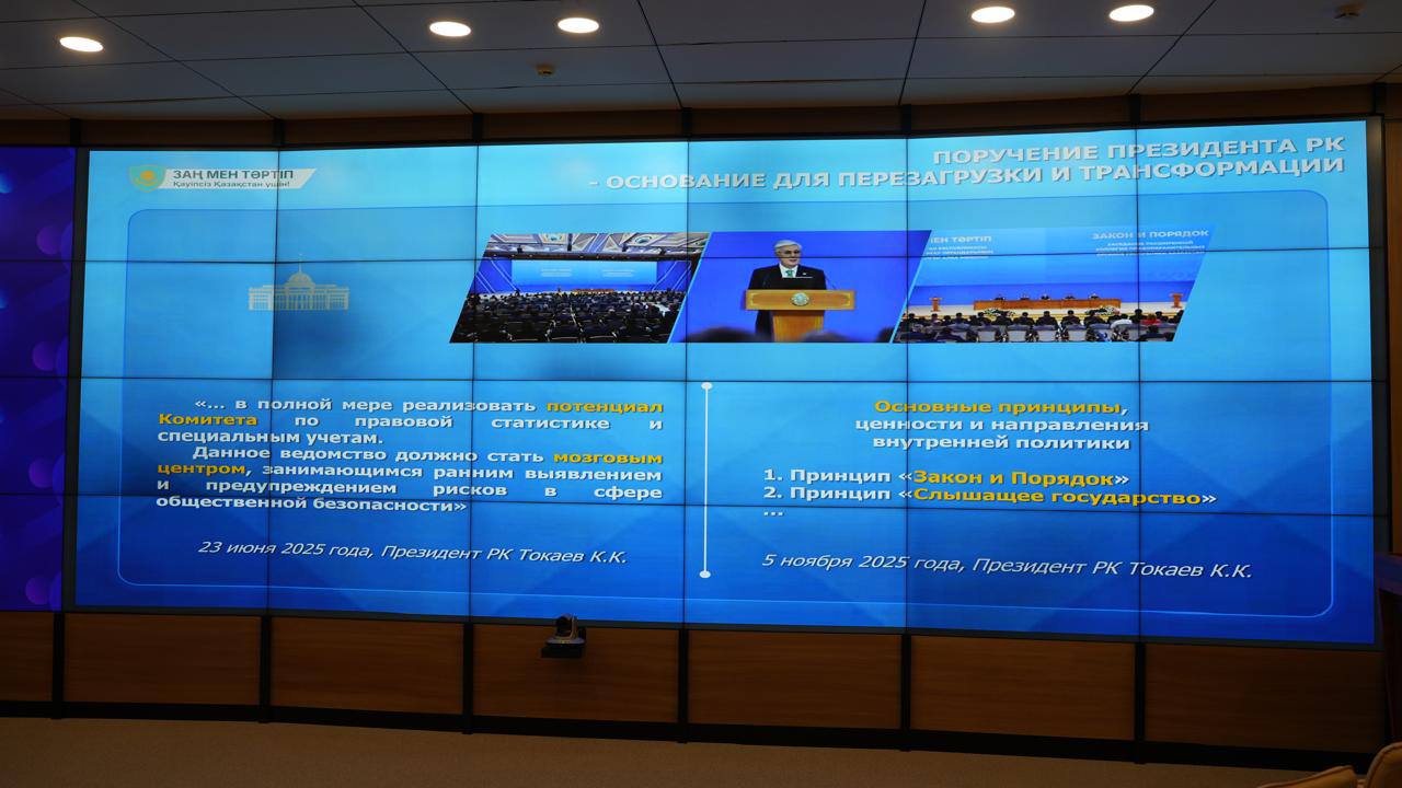 Президент тапсырмаларын іске асыру аясында Құқықтық статистика және арнайы есепке алукомитетін трансформациялау жүргізіліп жатқаны атап өтілді. Оның құрылымында 4 ай бұрын Қылмыстық қатерлерді болжау орталығы құрылды.
