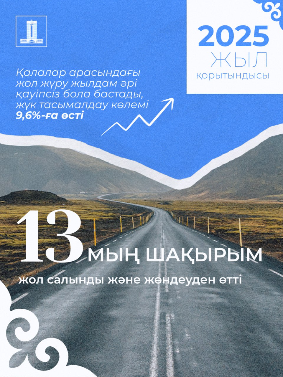 Қалалар арасындағы жол жүру жылдам әрі қауіпсіз бола бастады, жүк тасымалдау көлемі 9,6%-ға өсті.