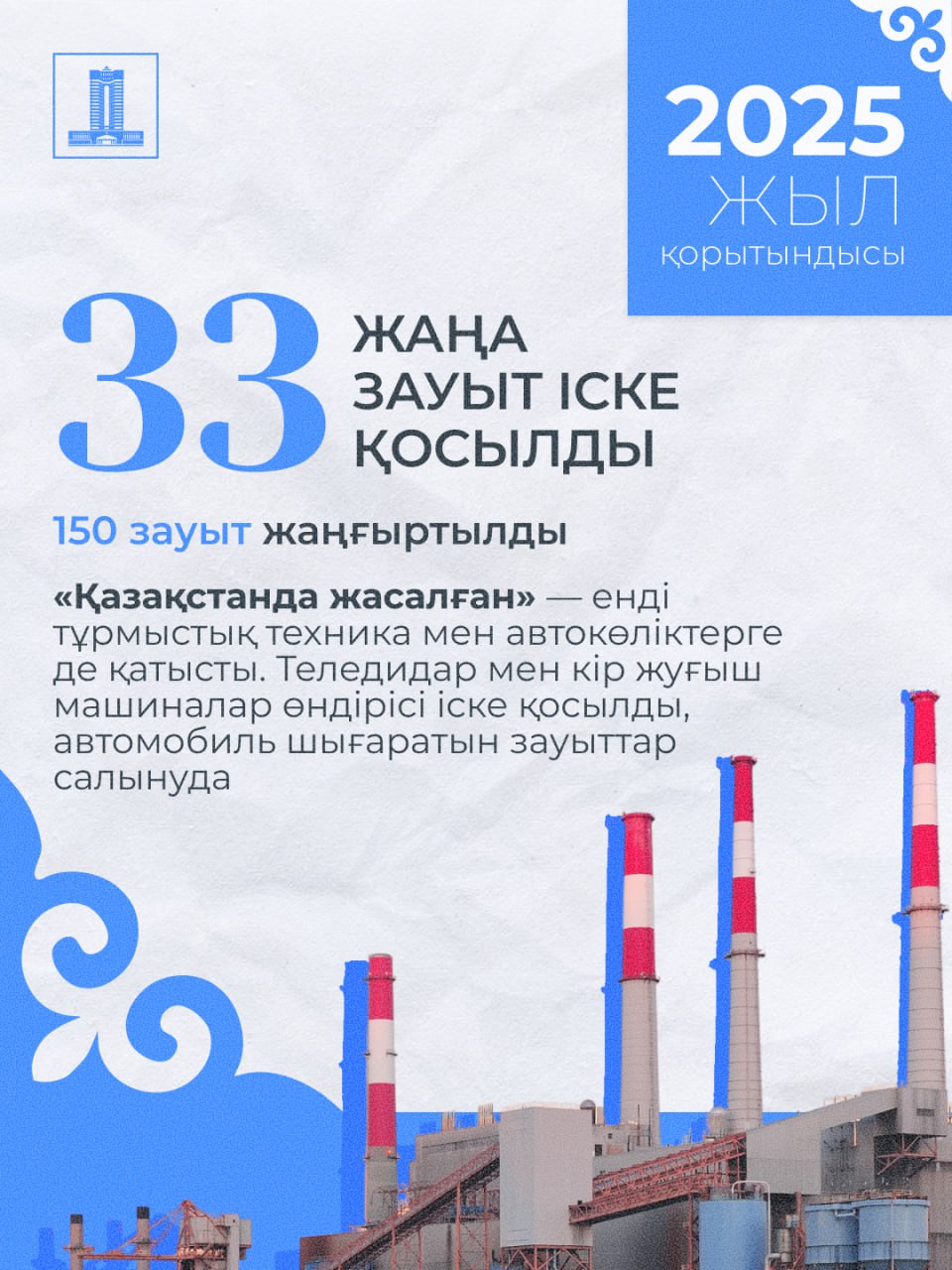 33 жаңа зауыт іске қосылды, 150 зауыт жаңартылды