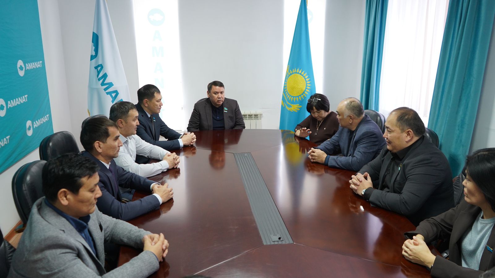 Қазыбек Әлішев жұмыс сапарының соңында «Amanat» партиясы Байғанин аудандық филиалының ғимаратында аудандық мәслихат жанындағы фракция мүшелерімен және партия белсенділерімен кездесті.