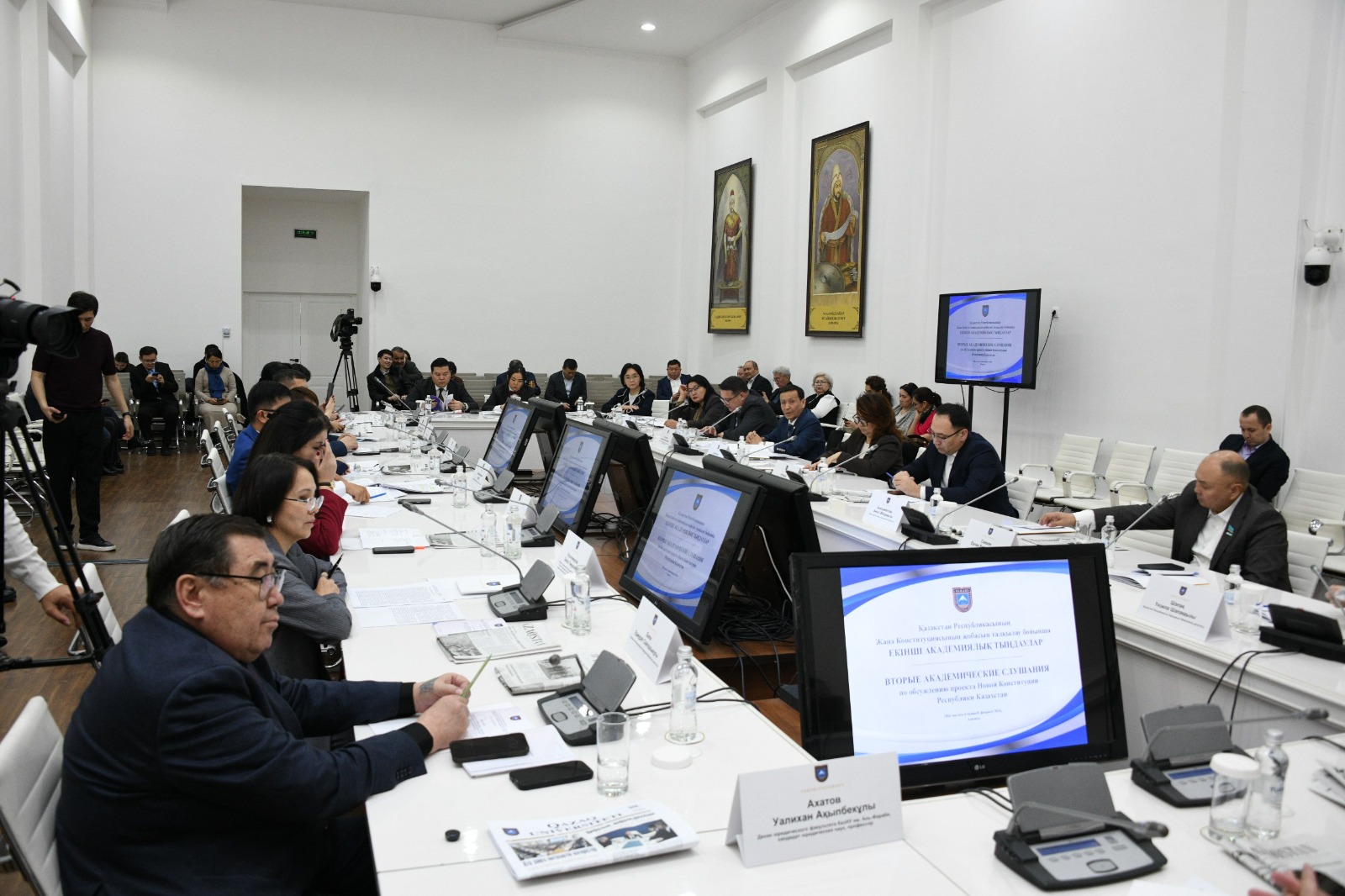 Академиялық тыңдауда мемлекеттік биліктің конституциялық негіздерін нығайту, адам құқықтары мен бостандықтарының кепілдігін кеңейту және қазіргі қоғамдық-саяси өзгерістер жағдайында құқықтық институттардың рөлін арттыру мәселесі қарастырылды.