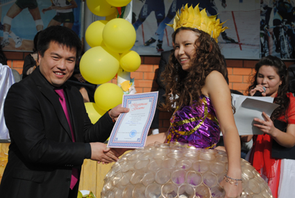 Кеште қалдық заттардан ұйымдастырылған «Қыздардың күзгі көйлектері» атты көрмеде жұртшылық алдына етегін пластикалық стаканнан жасаған 10-сынып оқушысы Нарғыз Көбекованың көйлегі тым көрікті болып, бас жүлдені жеңіп алды.
