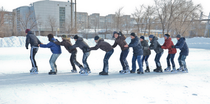 — Біздегі секцияларға жазылу, жаттығу тегін жүргізіледі. Қазір мектепте 360 оқушы дәріс алып жүр. Бірінші жыл келіп жүрген бала аптасына бір рет жаттығады. Барған сайын баланың жүктемесі көбейіп, жаттығатын күндері де жиілей түседі. Осыған көп бала шыдамайды, сосын үш жылдан соң әр топта алты балаға дейін азаяды. Кейбірі күннің салқынына, тағы бірі спорт мектебінің қашықтығына шыдамауы мүмкін. Әуесқойлар да бұл жерге келіп, коньки теуіп немесе топ болып тегін хоккей ойнай алады, — дейді спорт мектебінің директоры.