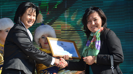Салтанатты шарада мемлекеттік тіл саясатын жүргізуге белсене қатысқан бір топ азаматтар облыс әкімінің орынбасары Сара Нұрқатованың және басқарма бастығының атынан Алғыс хаттар мен бағалы және ақшалай сыйлықтармен марапатталды. Олардың қатарында облыстық «Ақтөбе» газетінің бөлім бастығы Мейрамгүл Сатаева мен газет тілшісі Арайлым Нұрбаева бар.