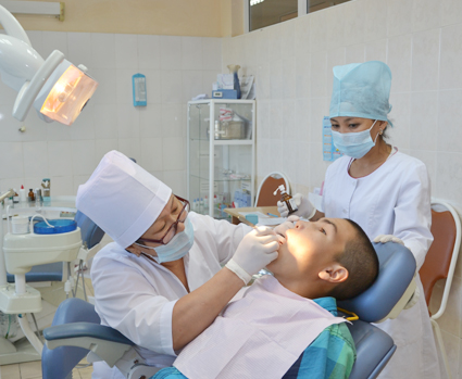 — Әрине, балалармен жұмыс істеу оңай емес, әр үйдің еркесі, олардың тілін табу, икемге келтіру үшін де тәжірибе керек, оған мамандану қажет. Бізде өз ісін жетік білетін мамандар жеткілікті. Әлия Ибраева, Анар Қыдырова, Құралай Мұратова сияқты тіс дәрігерлері бар. Бақыт Берденова, Роза Бекенова, Дүйсенбаева, Жантөренова сынды тәжірибелі медбикелер балалардың тісін емдеумен көптен айналысып келеді. Біздің емханада сәбилер туылғаннан бастап 18 жасқа келгенше ҚР Үкіметінің «Тегін медициналық көмектің кепіл берілген көлемінің тізбесін бекіту туралы» 2009 жылғы 15 желтоқсандағы №2136 қаулысына сәйкес тегін қызмет көрсетіледі. Тек қана қисық тісті түзету, яғни ортодонтиялық көмек ақылы.