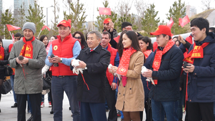 Қазақстан Коммунистік халық партиясы атынан Қазақстан Республикасы Президенттігіне кандидат Тұрғын Сыздықов пен жас коммунистер тобы қызыл ленталармен әсемделген көгершіндерді аспанға ұшырды. Олардың ұшуы дүниежүзіндегі бейбітшілікті, тұрақтылық пен өркендеуді, сондай-ақ, коммунистік идеялардың жаңа биіктерге көтерілуін сипаттайды.