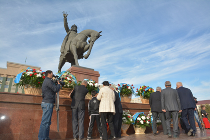 Гүл қою рәсімін облыс әкімі Бердібек Сапарбаев бастады. Одан соң облыстық, қалалық мәслихаттардың өкілдері, басқармалар мен департаменттердің басшылары, аудандық әкімдіктердің өкілдері гүл шоқтарын қойып, хан рухына тағзым етті.