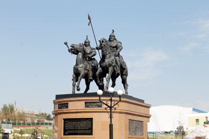 Қазақ хандығының 550 жылдығына орай қос батырды халық жадында мәңгілік сақтау үшін арнайы орнатылған монументалды кешен».