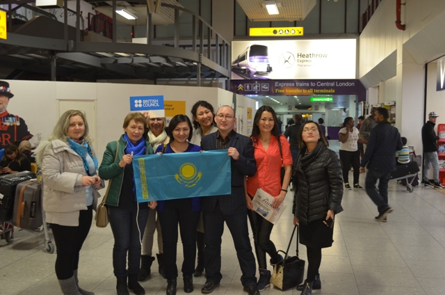 Күн сайын бұл жерден әлемнің 190 қаласына қарай 1300 ұшақ ұшады. Оның ішінде Астана әуежайы да бар. Күніне 185 мыңнан астам адам осы әуежайдың қызметін пайдаланады. Біз төртінші терминал арқылы өтті. Ұлыбританияда оқып жатқан әріптесіміз Айгүл Нұркееваның айтуынша, Тәжікстан, Ауғанстан секілді «-стан» сөзімен аяқталатын елдердің жолаушылары осы терминал арқылы өткізіледі екен. Мұның да бір себебі бар шығар. Біздің әрқайсысымызды жеке-жеке тексеріп: «Лондонға неге, не үшін келдің, неше күн боласың?» деген сықылды сұрақтармен әйтеуір қалаға қарай өткізді. Лондон жеріне табанымыз тиген соң тобымыз болып әуежайда Қазақстанның туымен суретке түсіп алдық.