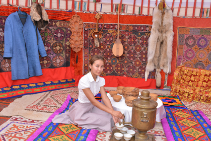 Хромтау аудандық тарихи-өлкетану музейінің директоры Нұргүл Аманғалиеваның айтуынша, XVIII-XIX ғасырдағы этнографиялық жәдігерлер қойылған киіз үй қазақ халқының барлық әдет-ғұрпына сай жабдықталған. Киіз үйдің сол жағы ер адамдарға арналған, ол жерде айбалта, қылыш секілді қару-жарақ, ат әбзелдері қойылған. Ал киіз үйдің оң жағы әйелдерге тиесілі, ол жерде ыдыс-аяқ, сандық тұр.