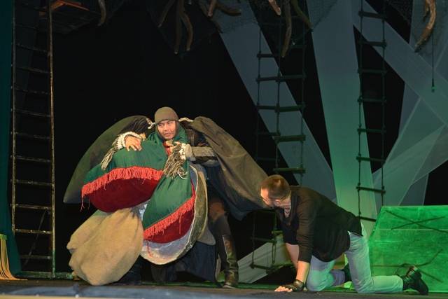 Осы спектакльде Қосүрей рөлінде қазақ өнерінің мақтаныштарының бірі, өзіміздің жерлесіміз, Қазақстанның еңбек сіңірген артисі Лидия Кәденова көрінеді. Ормандағы Аңдардың басқосуына келген Қосүрей: