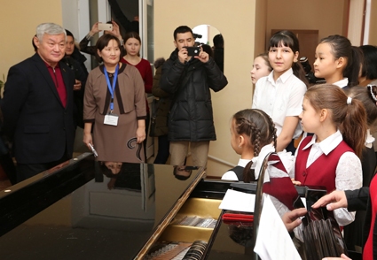 Облыс басшысы мектептегі баян, ән, терме, виолончель, қобыз, хор, флейта, теория кластарын аралап, оқушылардың өнерін тамашалады, оқуда озат болуларына тілектестік білдірді. Бердібек Машбекұлының алдында Жаяу Мұсаның «Ақ сиса» әнін шырқап берген Рахман Сәтиев 5 жылдан бері вокал класында оқиды.
