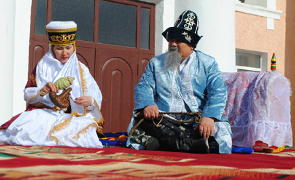 Орталық алаңда әрқайсысында ұлттық киім киген ақсақалдар мен аналар, бозбала мен бойжеткендер бар, ұлттық бұйымдар: домбыра, қамшы, аң терісі, құрақ көрпелер, сандық-кебеже қойылған 11 киіз үй тігілді.