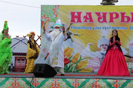 Қара қазанда наурызкөже қайнап, қонақтар күтілді. Жас бүлдіршіндер алтыбақан теуіп, қызыл-жасыл шарлар үріліп, жәрмеңкелер қызды. Жастар жағы спорт түрлерімен сайысып жатты. Тарихи-өлкетану музейі алдындағы үлкен сахнада аудан көркемөнерпаздары әзірлеген «Армысың, әз Наурыз!» атты театрландырылған көрініс көрсетілді. Қыз-жігіттер әсем сахна төрінде бір-бірімен әзіл айтыс өткізіп, салтанатты шараның әрін аша түсті. Сахна алдындағы алаңға түйеге мінген Қыдыр ата келіп, Наурыз батасын берді. Шернияз, Кердері Әбубәкір, Батақтың Сарысы кейпіндегі жыраулар алаңнан атпен өтіп, ұлттық дәстүрімізді одан әрі айшықтады. Бұдан соң ақ жаулықты әжелер шашу шашып, олардың хормен айтқан өлеңдері көптің көңілінен шықты. Осындай жақсы қойылымнан кейін мерекелік шара аудан көркемөнерпаздарының концертіне ұласты.