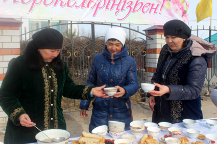Бұл күні қазан-қазан наурызкөже асылып, бір-біріне ақжолтай тілектерін арнаған тұрғындар ұлттық салт-дәстүріміздің көркін қыздырды.
