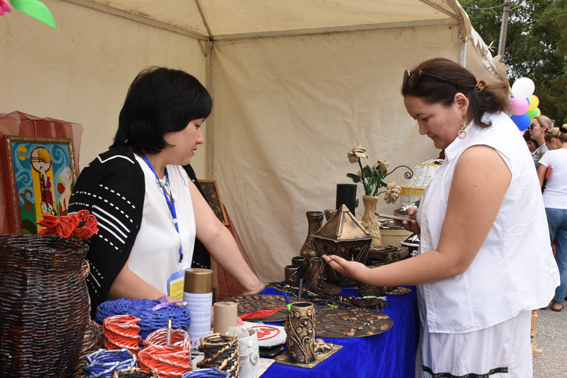 Ақ жаулықты әжелер мен аналар хромтаулық қолөнершілер көрмесі маңында көбірек аялдады: мұнда шеберлер Салтанат Жолдыбаева мен Айнаш Дүйсенова шеберлік сабағын өткізді. Әсіресе, біз арқылы кесте төгу жолдарын көруге құмартқандар көп болды. Аталған шеберлердің екеуі де Хромтау қаласындағы мектептен тыс білім орталығында қолөнер үйірмесіне жетекшілік етеді. Олардың шәкірттері арасында да өнерлі, талапты балалар аз емесі осы көрмеге қойылған әсем бұйымдардан байқалды.