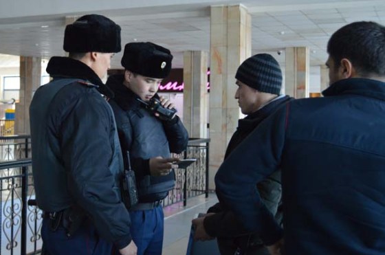 Вокзалға сапар шекпесе де келетін адамдар көп. Полиция қызметкерлері жүріс-тұрысынан күдік тудырған азаматтардың құжатын тексереді. Әділет Құрманбаев пен Саламат Мырзахан вокзалдың екінші қабатында отырған, өзбекстандық екі азаматтың құжаттарын тексерді. Ресейден елдеріне қайтып бара жатқан жігіттердің бірінің билеті жоқ болып шықты.