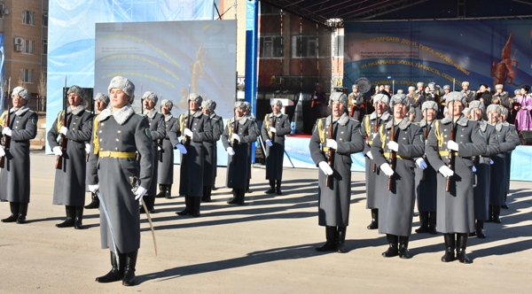 Облыстық тарихи-өлкетану музейінің алдындағы алаңда өткен салтанатты шара ҚР Мемлекеттік күзет қызметінің Президенттік оркестрінің әншілері — Асылхан Шалқаров, Гүлнұр Әділбекова, т.б. орындауындағы әндермен басталды. Оларды «Айбын» Президенттік полкі Құрмет қарауыл ротасының әскери қызметшілері салтанатты шерумен сүйемелдеді. Әскери қызметшілердің өнеріне взвод командирі Қайрат Молдабеков басшылық етті.