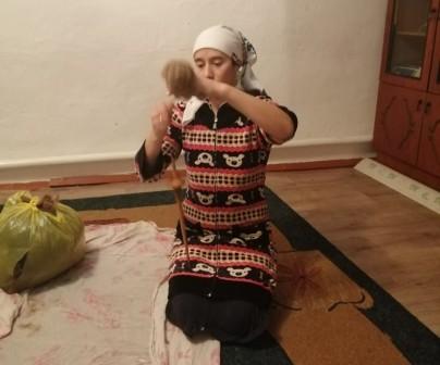 Негізінен, жүн түтіп, жіп иірудің өзіндік технологиясы бар екені рас. Қойды қырқып, кейін оның жүнін кəдеге асыру — еңбекқорлықты қажет ететін тірлік. Жүнді əуелі тазартып алу керек. Одан кейін жуып, жақсылап кептіреді. Бұдан соң сабаумен сабап, жүнді иіріп, ширатамыз. Ұршық иіру де шеберлікті талап етеді, — дейді кейіпкеріміз.